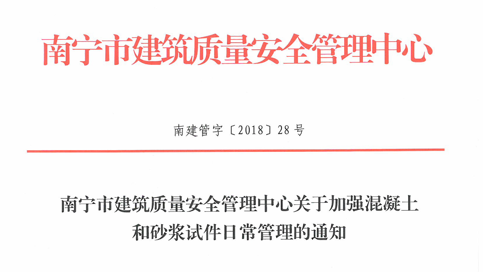 南寧市建筑質(zhì)量安全管理中心關(guān)于加強(qiáng)混凝土和砂漿試件日常管理的通知